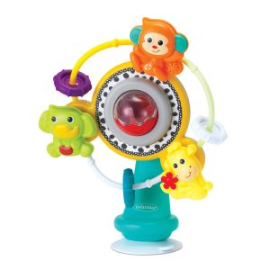 Babies will enjoy spinning the wheel around and around. Meanwhile, as the wheel spins, bebee and his friends will also whirl around on their seats. Your child will be dizzy with laughter by the rattling sounds and colorful roller ball in the center. A suction cup attachment ensures that it will stay in place as it spins on any smooth surface such as high-chairs, stroller trays, and tables.