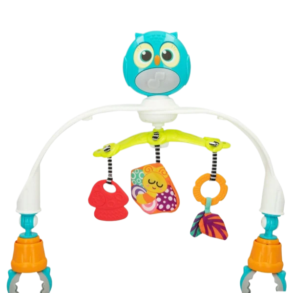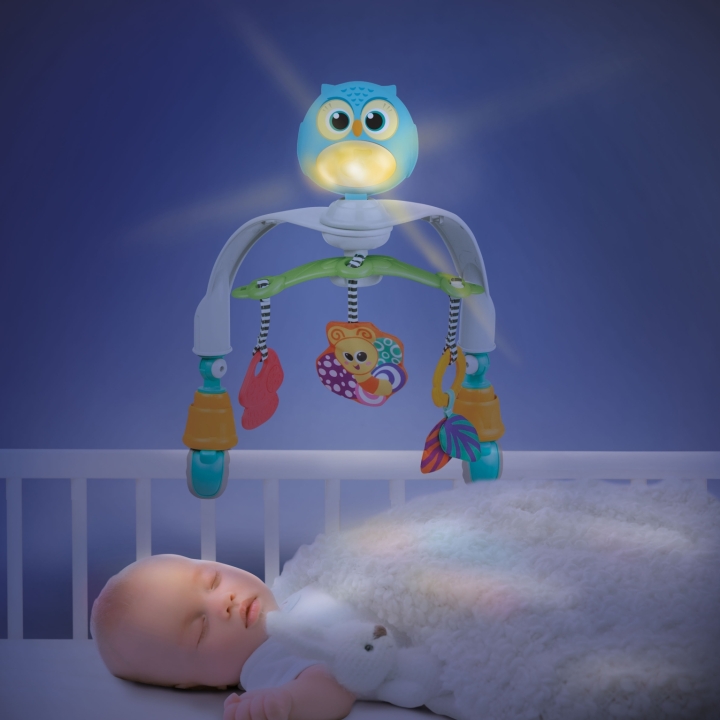 • his carousel has flexible, foldable arms. Perfect for home and travel.