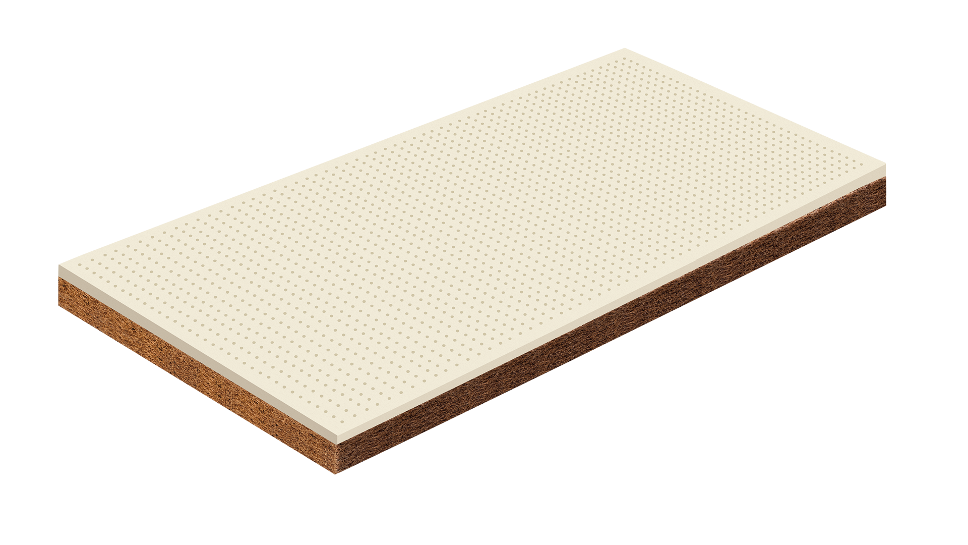 A mattress with two sides! One soft side made of natural latex and a flatter side made of 100% natural rubberized coir for proper spinal development of your child. The rubberized coir is a 100% natural high strength product that ensures the right temperature is maintained. The latex offers comfort and great flexibility.