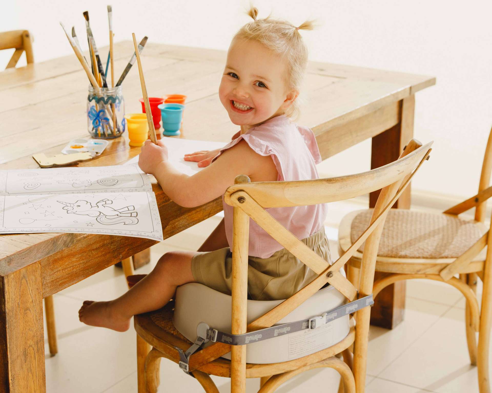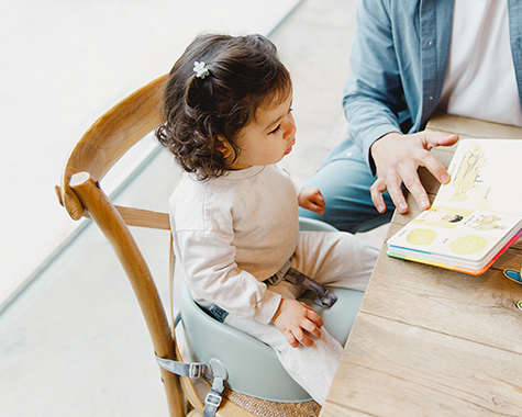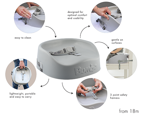 The Bumbo® booster seat is soft enough to provide comfort but sturdy enough to elevate your toddler to sit more comfortably at the table.