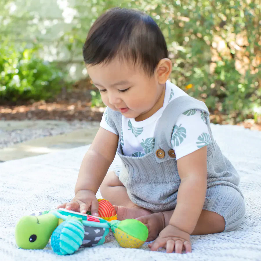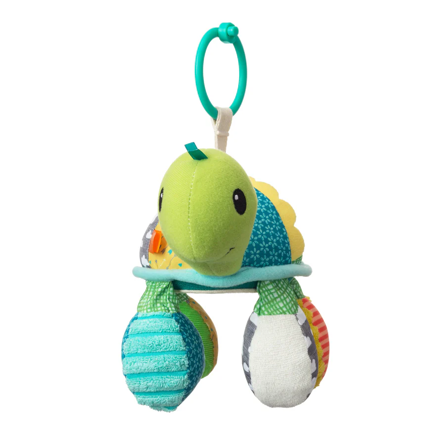 Babies will go gaga for this linkable turtle pal with fun rattle sounds, interesting textures and a mirrored belly for peek a boo play.