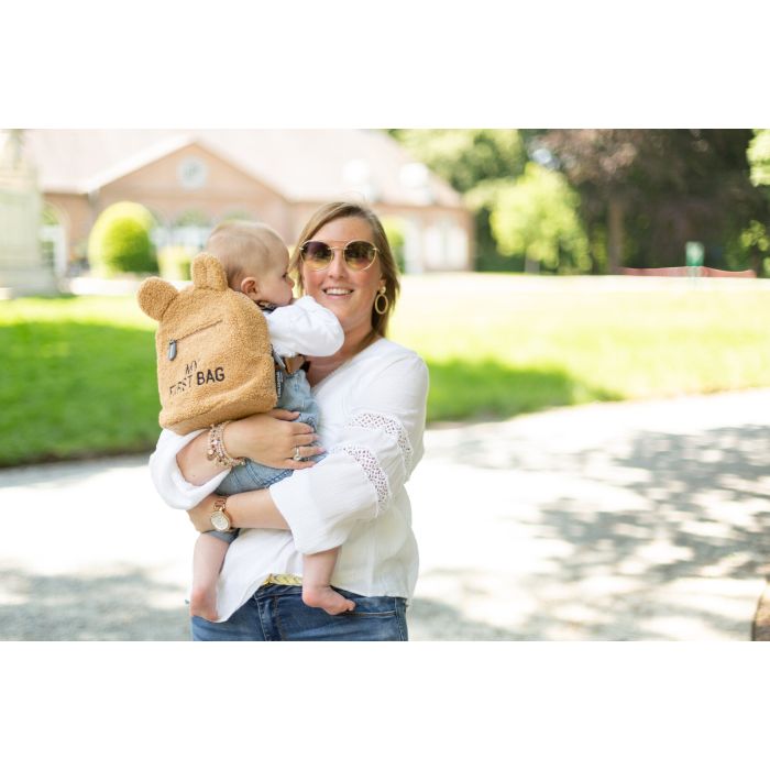 Discover the Childhome My First Bag children’s backpack in trendy and super soft teddy fabric! This first backpack for your little one fits moms large Mommy Bag perfectly and even suits the youngest kids. The largest compartment is large enough to bring a cookie or a piece of fruit and in the small compartment your child can still take his/her favourite things. The removable and adjustable safety buckle ensures that the backpack always feels comfortable and stays in place! The My First Bag backpack for toddlers is also available in other colours. Tip : do not place the bag on a rough surface to avoid traces of wear. Also be careful with sharp objects.
