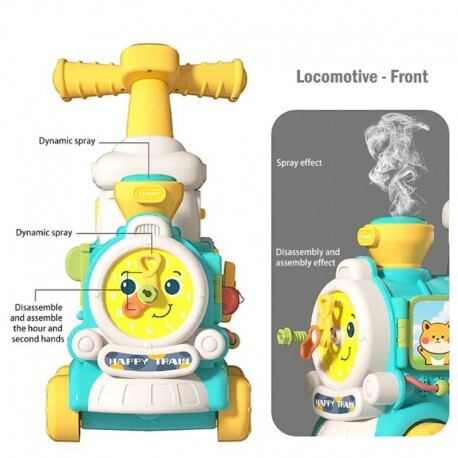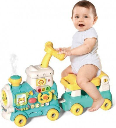 Ποδοκίνητο τρένο με εφέ ατμού και τρέιλερ που διαθέτει αποθηκευτικό χώρο. Περιλαμβάνει περπατούρα και κέντρο δραστηριοτήτων με μουσική και παιχνίδια. Κατάλληλη για παιδιά από 18 μηνών.