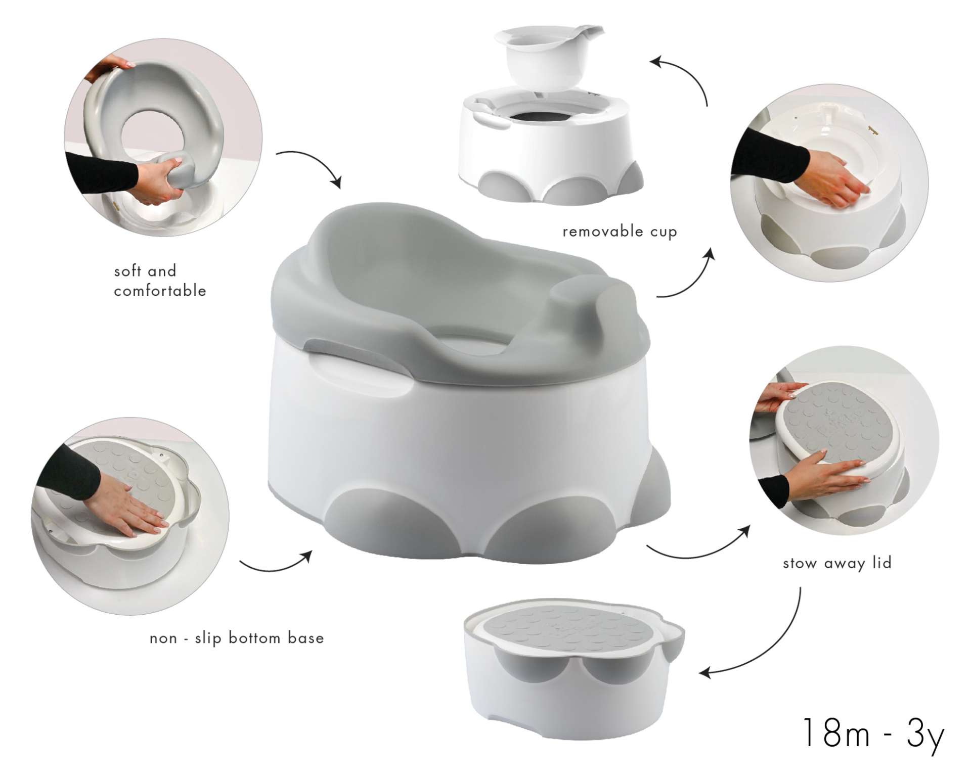 The Bumbo® step ‘n potty is a comprehensive potty-training solution. It easily converts from a soft and comfortable potty to a toilet trainer and step. This practical product will see you all the way through the transition from potty to toilet training.
