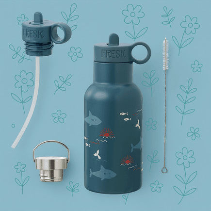 The Fresk company’s water bottle is made from stainless steel material that does not break or rust over time. Due to its material, it is not affected by acidic drinks such as fruit juices, unlike aluminum. Additionally, it is also a thermos which has the property of maintaining the liquid’s temperature for a considerable amount of time, such as during summer at the beach. It also features a straw for easy and controlled flow when the child drinks.